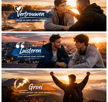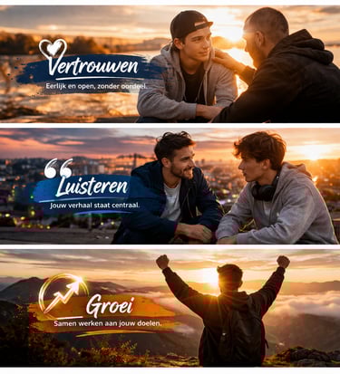 Voor jongeren die vastlopen en echt gehoord willen worden. Geen belerende praat, maar iemand die luistert en helpt de juiste keuzes te maken.